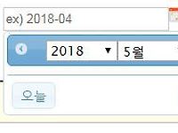 DatePicker에서 년월만 선택하기 스크립트 수정 var datepicker_default = { closeText : "닫기", prevText : "이전달", nextText : "다음달", currentText : "오늘", changeMonth: true, changeYear: true, monthNames : [ "1월", "2월", "3월", "4월", "5월", "6월", "7월", "8월", "9월", "10월", "11월", "12월" ], monthNamesShort : [ "1월", "2월", "3월", "4월", "5월", "6월", "7월", "8월","9월", "10월", "11월", "12월" ], dayNames : [ "일요일", "월요일", "화요일", "수요일", "..